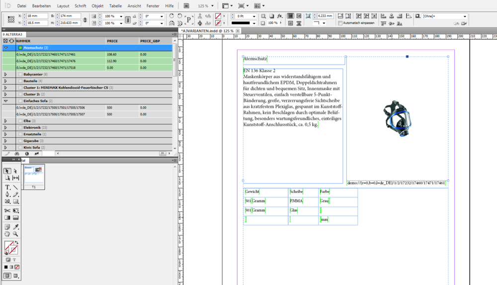 • Layoutvorlagen in Adobe InDesign erstellen und diese Vorlagen mit Feldern einer Datenbank verbinden.