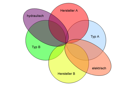• Die Ergebnismengen einer Facettensuche beinhalten viele Datensatzüberschneidungen (Schnittmengen).
