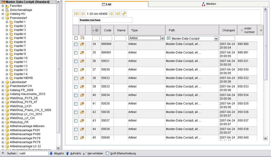Screenshot: Massendatenpflege in einer Katalogsoftware