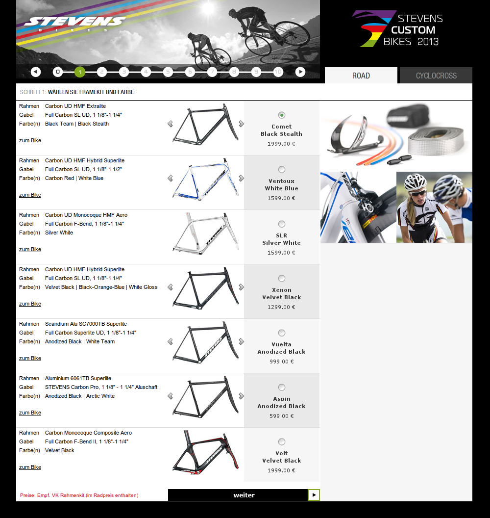 Screenshot: Quelle: http://www.stevensbikes.de
